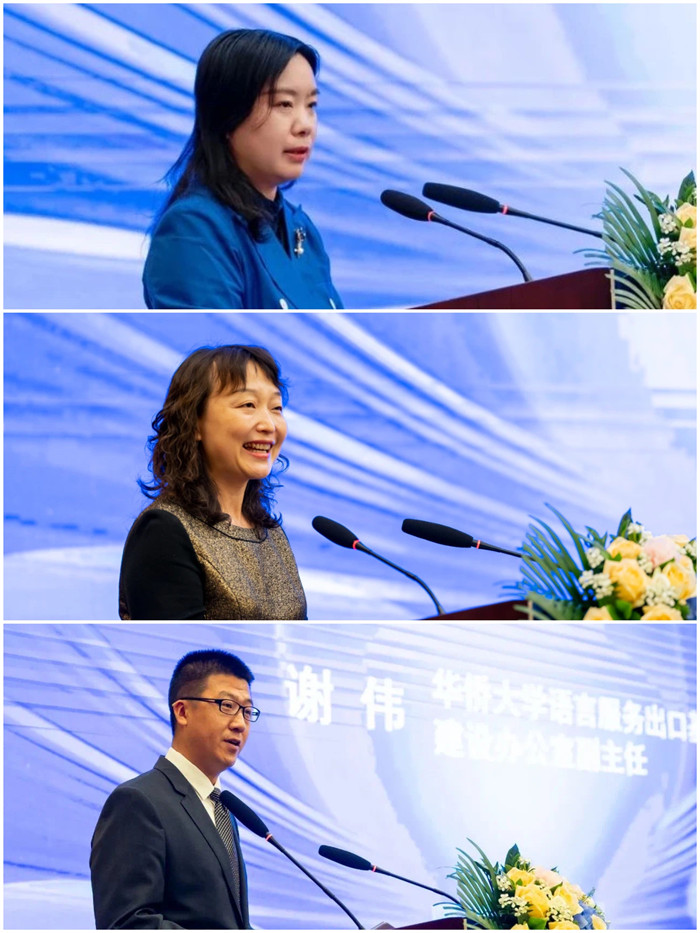 在“协同发力共话语言服务未来”交流研讨环节中,北京语言大学教授、语言服务出口基地首席专家王立非分析了我国语言服务产业发展现状以及四大经济区域语言服务出口规模,并建议研发语言服务出口质量评价体系、发布语言服务出口晴雨表指数报告、出台语言服务质量系列标准、增设特色服务质量奖。华侨大学语言服务基地建设办公室副主任谢伟介绍了华侨大学语言服务核心技术的平台和模式,分析了“语言服务+”的核心理念、技术、资源,提出了语言服务赋能产业发展的创新机制和语言服务未来发展的协同机制。
