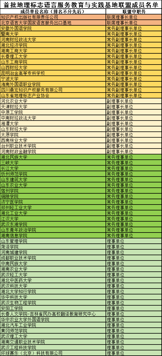 12月03日,地理标志语言服务教育与实践基地联盟成立大会在京召开。由知识产权出版社有限责任公司(以下简称知识产权出版社)、北京语言大学国家语言服务出口基地共同发起成立地理标志语言服务教育与实践基地联盟(以下简称联盟)。联盟首届理事会由50余所高校及10余家企业单位组成。知识产权出版社、北京语言大学国家语言服务出口基地担任联盟联席理事长单位,安徽外国语学院、宁波大学等13家单位担任首届常务副理事长单位,其余联盟成员单位分别担任首届副理事长单位、常务理事单位和理事单位。知识产权出版社党委副书记、副总经理李程,中国外文局机关党委常务副书记、中国翻译协会常务理事闵艺出席大会并致辞。北京语言大学教授、国际语言服务研究院院长、国家语言服务出口基地首席专家王立非就职联盟联席理事长并发表讲话。