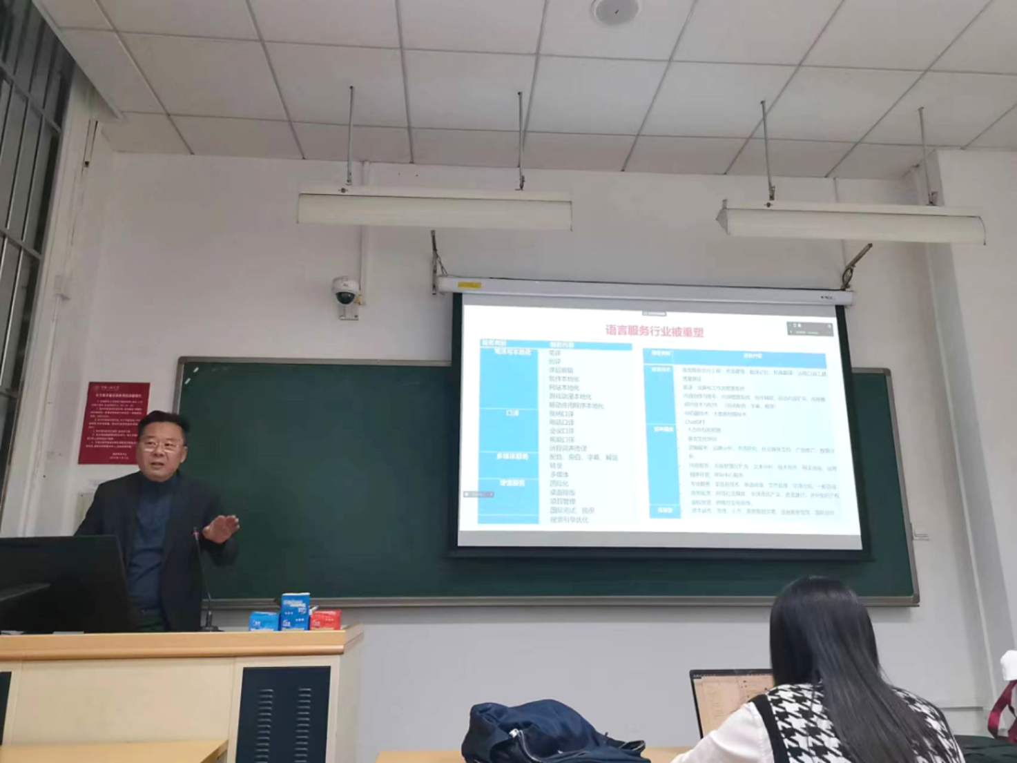 11月28日,中国人民大学外国语学院MTI系列讲座“翻译教育的智能语言服务转向”在公共教学二楼2104教室举办。讲座由北京语言大学教授、国家语言服务出口基地首席专家、北语“领军学者”王立非主讲,由我院MTI教育中心主任朱源教授主持。来自外国语学院MTI教育中心的同学们参加了此次讲座。