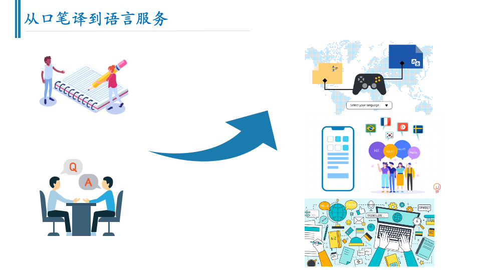 大家可以想象这样的一个场景,我们每天在手机上看到那么多的短视频,我们每天通过微信等社交平台不断的去发送语言文字信息,这些都是多语言的内容,这些多语言的内容不仅会在你的手机上出现,也会在你的电脑上出现,也会在互联网上出现。所以无论是购买语言服务的企业,还是提供语言服务的企业,事实上都在不断的去更新自己的内容管理的平台,不断的去升级改良自己管理内容的方式,不断的去提升自己语言服务管理的效率,不断的将新的技术和自己的语言服务的需求结合到一起来。随着语言服务的领域不断扩大,他们不仅仅是在纸笔这样的翻译上,也不仅仅是局限于面对面的人的交传或者同传的一个场景,而是在将自己的语言服务的需求扩展到今天不同媒介的语言服务的场景之中。
