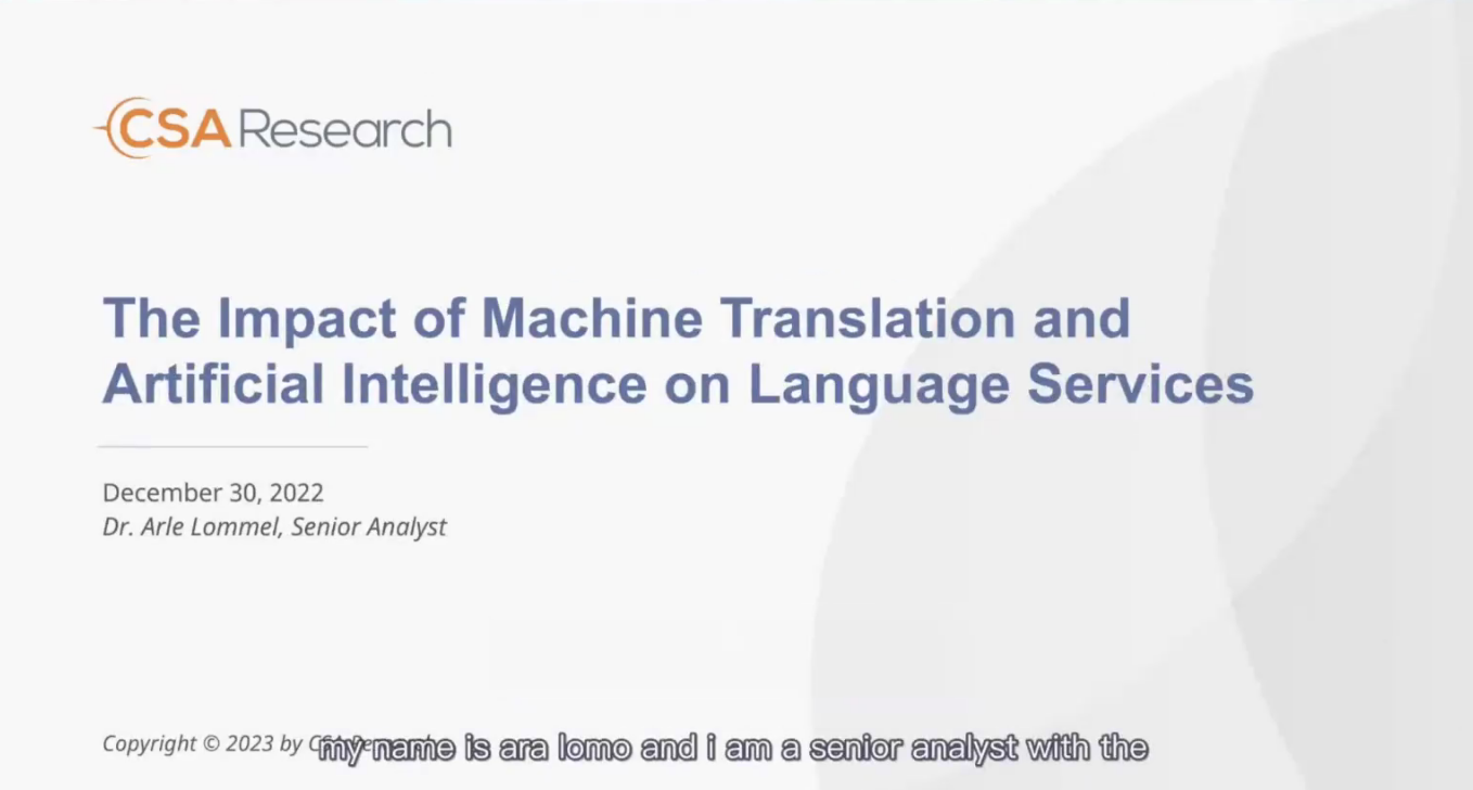 美国CSA Research机构资深分析师Arle Lommel对“机器翻译与人工智能对语言服务的影响”进行讨论,他首先介绍了CSA Research公司发展和业务范围,进而基于详实的调研数据,展示了2022年全球语言服务市场表现,提出机器翻译对于语言服务行业产业具有重要意义,并呼吁中国进一步关注并推动机器翻译的发展。