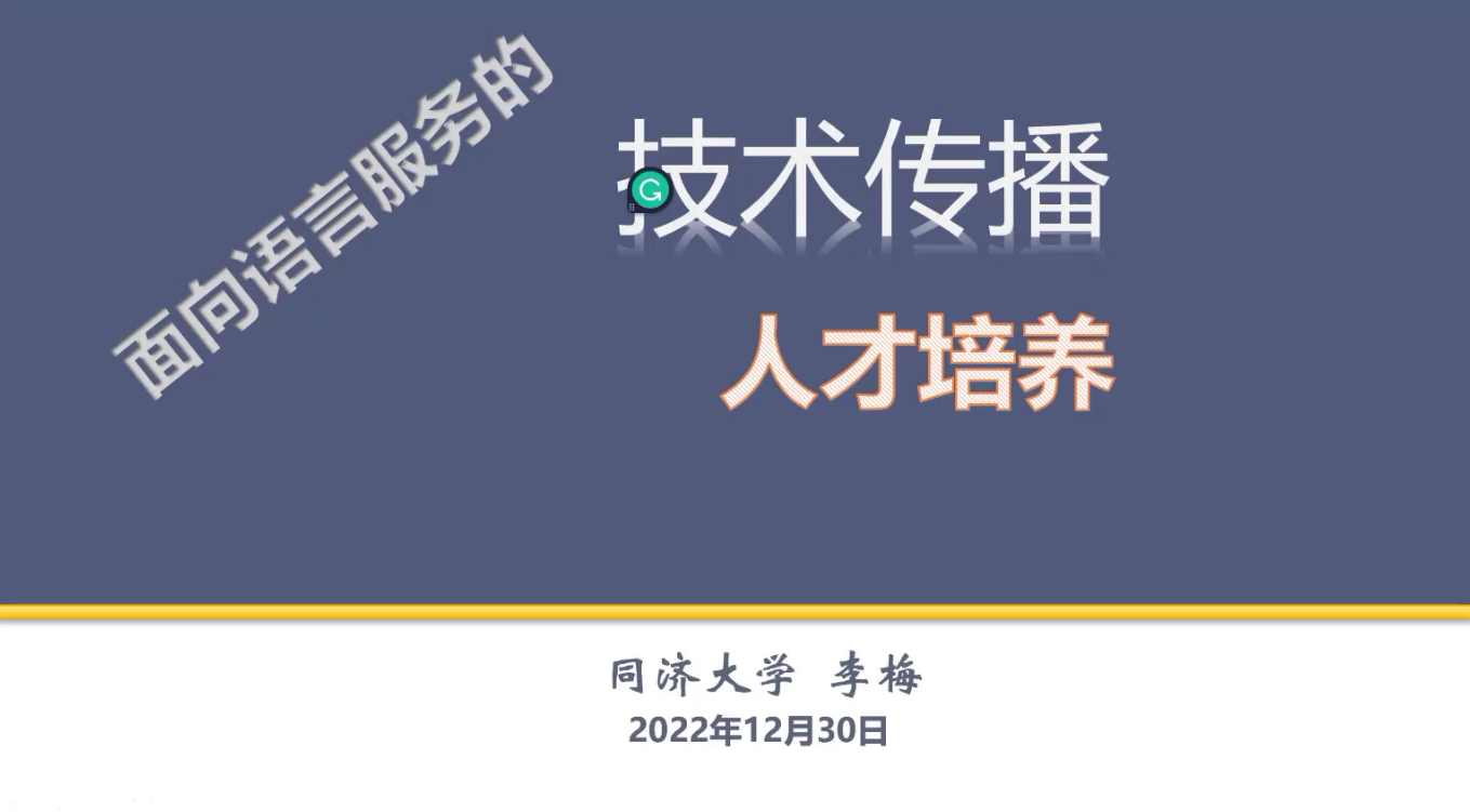 同济大学MTI中心主任李梅教授首先探讨了“面向语言服务的技术传播人才培养”,对技术传播的定义和概念进行阐释,梳理技术传播的内容发展趋势,进而以同济大学为例,介绍技术传播人才培养与课程设置。