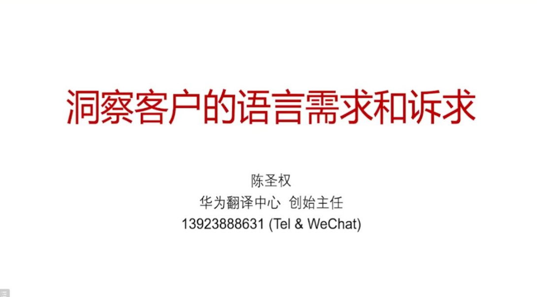 蒙永业博士主持论坛第四主题“语言服务产业发展”。华为翻译中心创始主任陈圣权做题为“洞察客户的语言需求和诉求”的主旨演讲,介绍了华为翻译团队、翻译技术、研发投入、提供的产品和解决方案等,梳理了语言服务的独特价值,并就如何深入了解客户需求和诉求并针对性提供服务进行讲解。