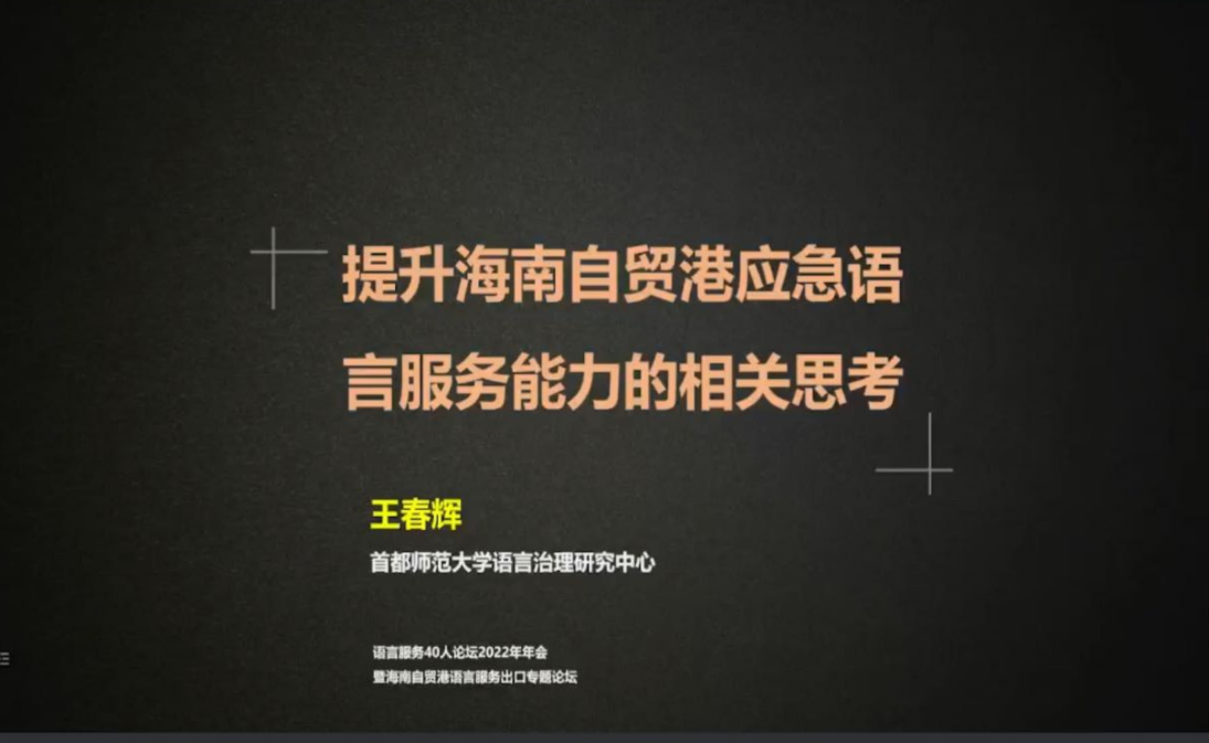 首都师范大学语言治理研究中心主任王春辉就如何“提升海南自贸港应急语言服务能力”提出思考,从场域化和区域化两个维度,探讨海南应急语言服务体系的构建。