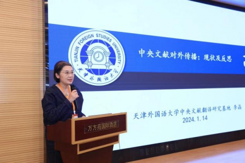 对外传播专题论坛由河北经贸大学外国语学院院长张润教授主持。天津外国语大学高级翻译学院院长、中央文献翻译研究基地常务副主任李晶教授通过中央文献的翻译来探讨对外传播的现状及反思,天津财经大学人文学院院长温秀颖教授就飞散译者与中国文化外译进行了探讨。
