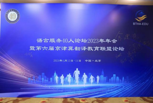 语言服务40人论坛2023年年会暨第六届京津冀翻译教育联盟论坛于2024年1月13—14日在北京万方苑国际酒店成功举办,此次论坛以“人工智能时代的翻译教育与中国式现代化”为主题,邀请150余位来自国内外语言服务行业的领导、专家、学者和业界人士共同探讨语言服务与翻译教育的高质量发展。