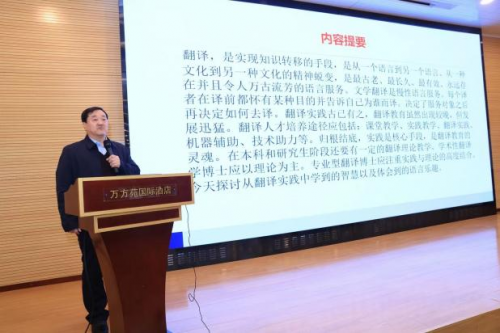 主旨演讲分为语言服务教育、语言服务能力、翻译教育、对外传播、语言技术五个专题论坛,多位知名专家学者分享了他们对于人工智能时代下语言服务学科建设、教育现代化、智能语言服务能力建设等问题的思考与实践。