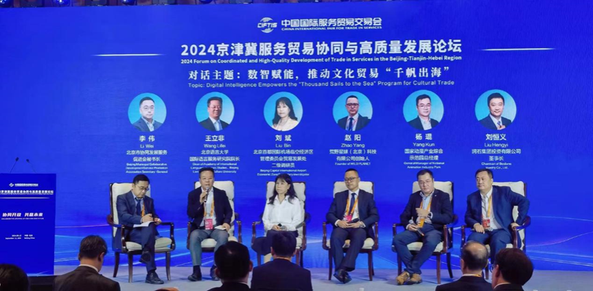会上,来自京津冀三地的专家,围绕数字贸易、文化出海和新兴产业出口展开探讨,以主旨演讲、主题推介、圆桌对话等方式,就全球服务贸易发展新形势下,三地如何开创协同发展新模式、新路径建言献策。