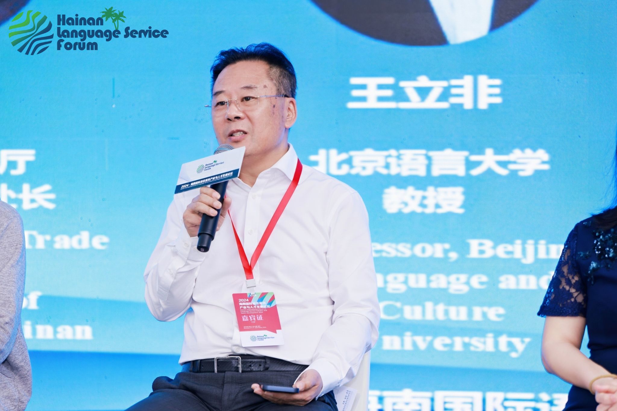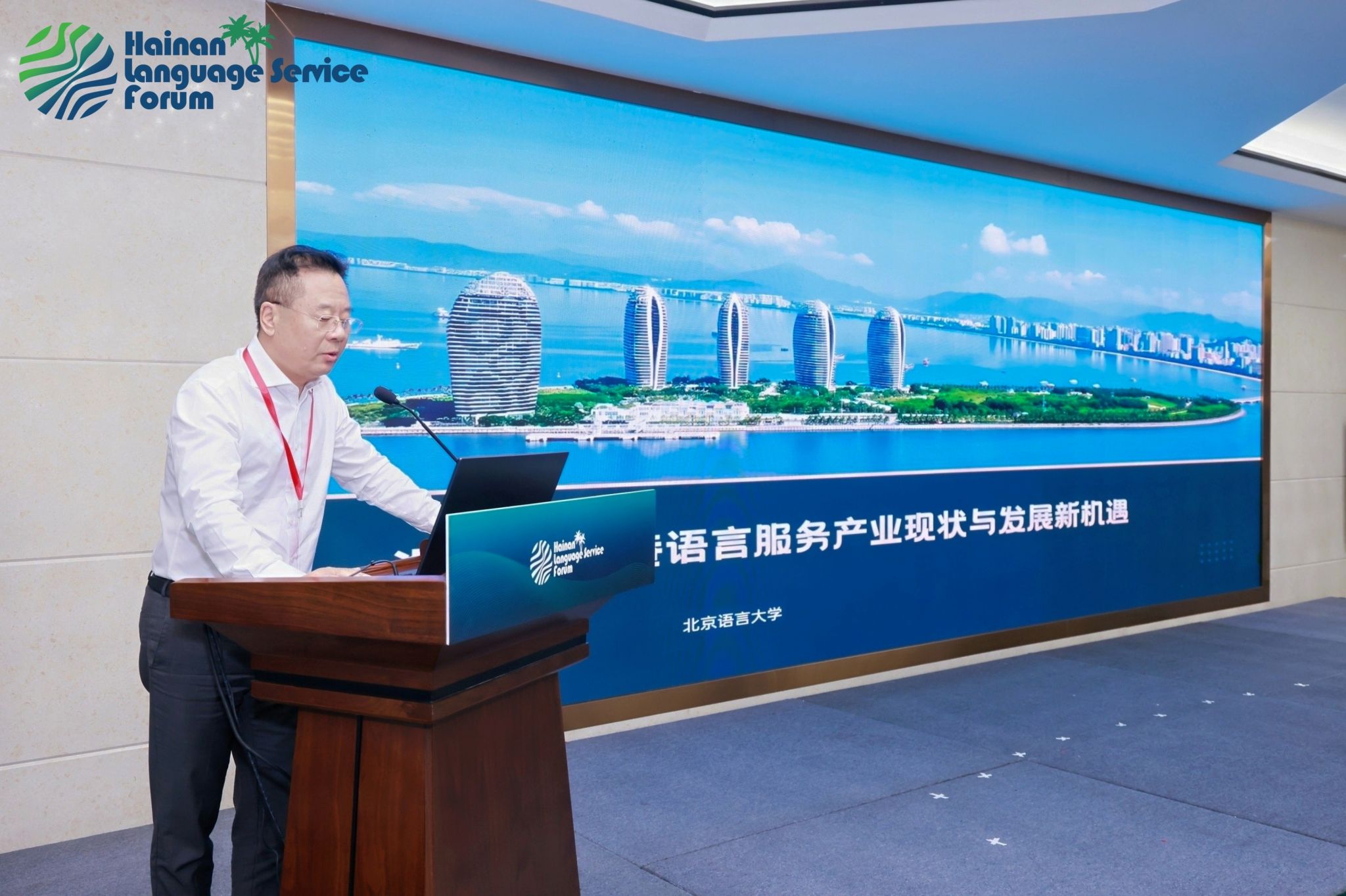 11月15日,“2024·海南国际语言服务产业与人才发展论坛”在海南海口开幕。本次论坛以“创新、融合、共享——构建海南自贸港语言服务新生态”为核心议题,设置了“RCEP框架下语言服务产业体系的创新与发展”“多语种需求驱动下的人工智能成果与应用”以及“人工智能时代语言服务人才培养与职业规划”三场分论坛,旨在搭建国际语言服务行业交流平台,促进语言服务供需的有效对接,积极助力海南自贸港国际语言环境建设。约200名专家学者、企业精英及行业从业者共话国际语言服务发展趋势。北京语言大学国家语言服务出口基地首席专家、国际语言服务研究院院长王立非教授受邀出席本次论坛并作主旨报告。